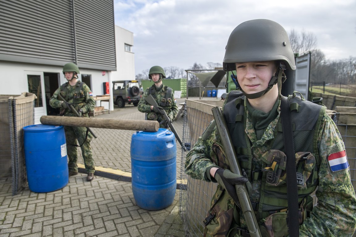 De studenten gaan ook regelmatig op excursie. “Elk jaar gaan we naar de Belgische stad Ieper. Daar is in de Eerste Wereldoorlog veel gevochten”, zegt Erik. “We bezoeken musea en militaire begraafplaatsen en leggen een krans bij een oorlogsmonument. Daarnaast gaan we twee keer per jaar een week naar Kamphuis Ahoy op het oefenterrein van Defensie bij Oosterhout. Daar nemen we verschillende examens af. Ook nodigt Defensie ons regelmatig uit om aanwezig te zijn bij grote militaire oefeningen. Laatst waren we bijvoorbeeld een hele week intern op een kazerne om een grote schietoefening bij te wonen. Een mooie manier om te ontdekken wat het militaire vak écht inhoudt.”