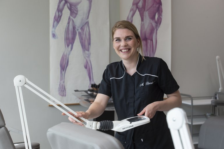 Wat moeten studenten volgens Marleen ‘meenemen’ om een succes van deze studie te maken? “Ik ben altijd heel direct in mijn vragen aan iemand die deze studie overweegt: is dit wat voor je? Je moet aan mensen zitten en je krijgt best veel theorie over de anatomie en huidtypes. Ook vraagt dit vak een aardig aantal competenties. Je moet sociaal zijn, zorgzaam, perfectionistisch met oog voor detail, klantvriendelijk, niet vies zijn van mensen, representatief en geïnteresseerd in je klanten. Dat is een best lange lijst. Maar als je er echt voor wil gaan, ga je voor een mooie toekomst.”