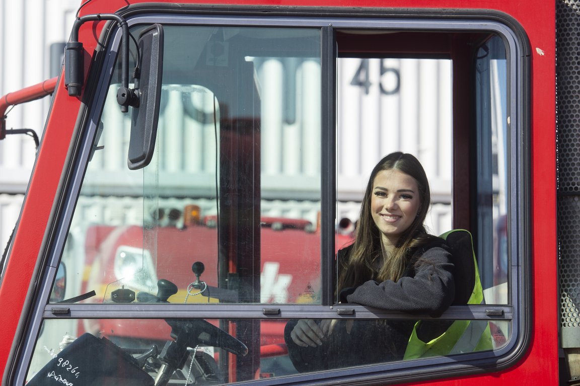 Elmira is blij dat ze van de opleiding verzorgende IG is overgestapt naar chauffeur wegvervoer. “Deze studie past veel beter bij me”, zegt ze. “Ik ga met plezier naar school en naar mijn werk. Elke keer als ik in de terminaltrekker stap, denk ik: wat ontzettend stoer dat ik deze wagen kan besturen.”